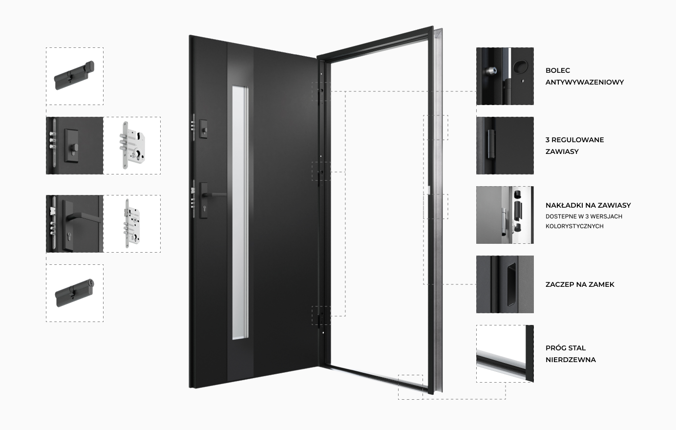 (ościeżnica / skrzydło) - 1,5 mm / 0,7 mm